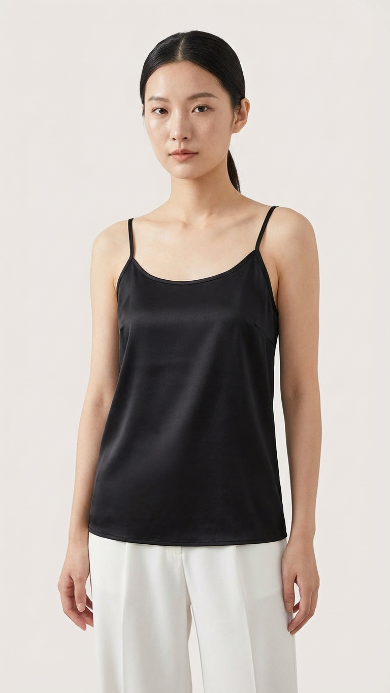 Un tombé parfait grâce à la densité de la soie 30 momme. Un débardeur qui drape le corps avec une élégance incomparable.